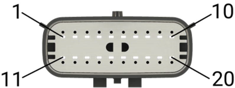 - 20 pin I/O expansion connector is standard for the Gen III Drive-By-Cable harness. It can be paired with either additional I/O flying lead harness or 4L60e/4L80e expansion harness for direct plug in and play to the 4L60e and 4L80e transmission setups.