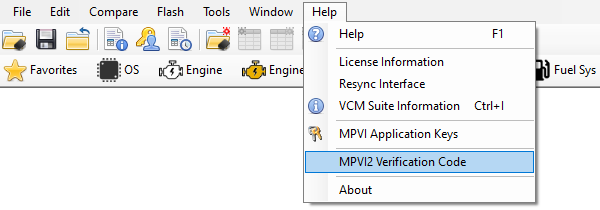 In the menu bar, select Help > MPVI2 Verification Code.
