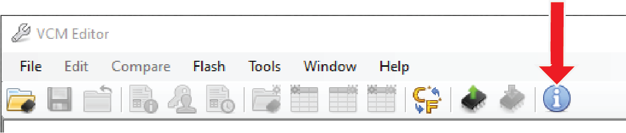Click the VCM Suite Info button in either VCM Editor or VCM Scanner.