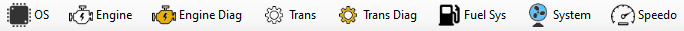 VCM Editor organizes vehicle parameters and DTC lists into a tab system. The top level of these tabs can be seen just below the main toolbar.