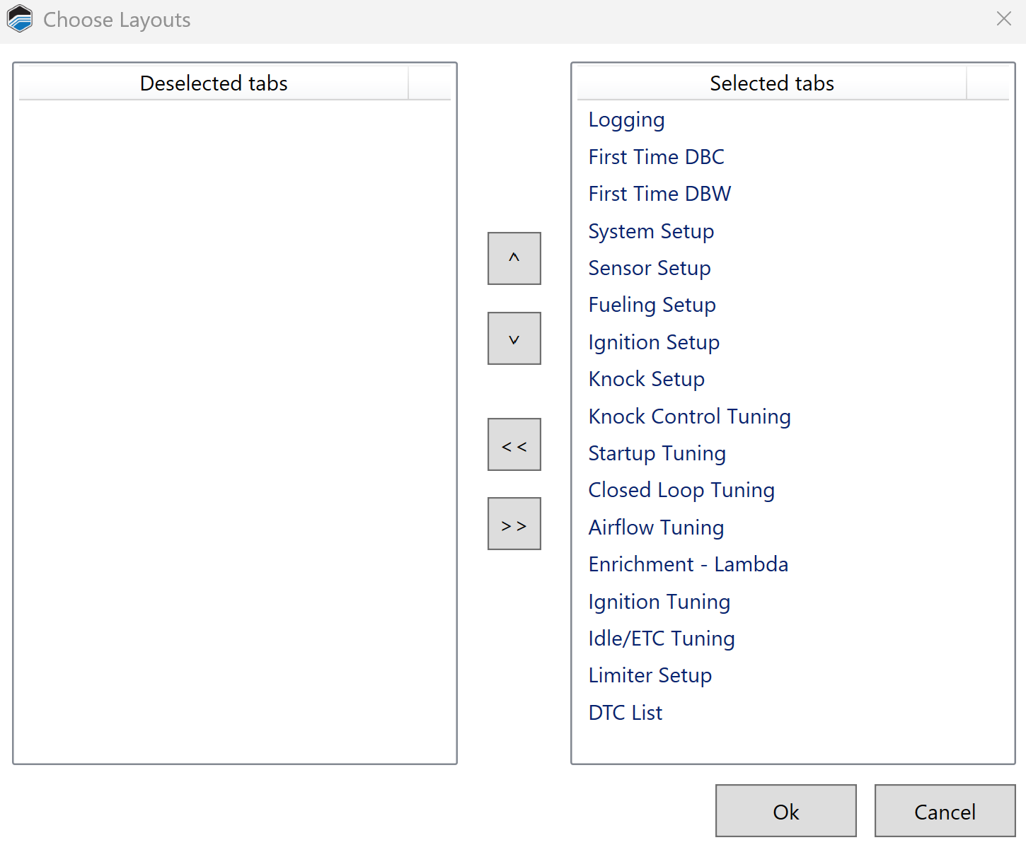 Select the tabs from this layout to load. By default, all the tabs will be loaded. If you wish to remove a tab: