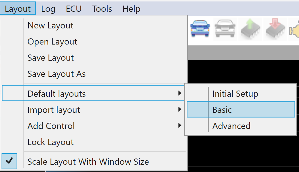 There are a number of pre-defined layouts listed in the menu bar. To open one of these layouts:
