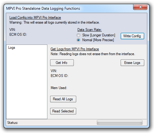 MPVI Interface🔗 The standalone data logging feature of the MPVI Pro is only available for late model GM vehicles.