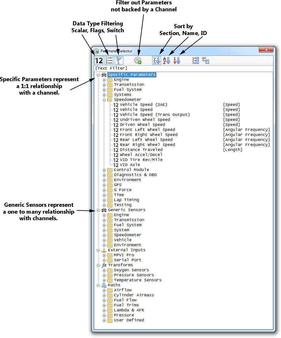 For the control to populate with data during live scanning, or playback, that parameter must be backed by a Channel in the Channel Display.
